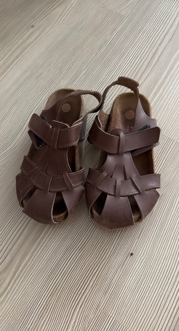 Koyu kahverengi deri erkek çocuk sandaletler tokalıdır ve sade, klasik bir tasarıma sahiptir. Rahat ve dayanıklıdır.