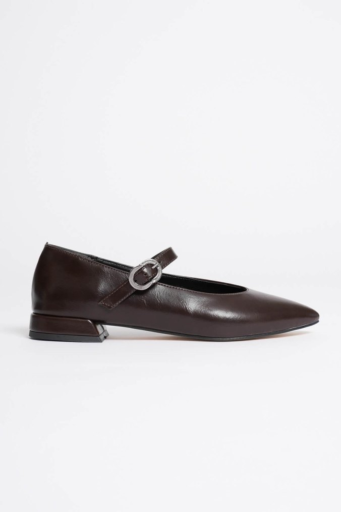 Kahverengi Deri Tokalı Kadın Babet