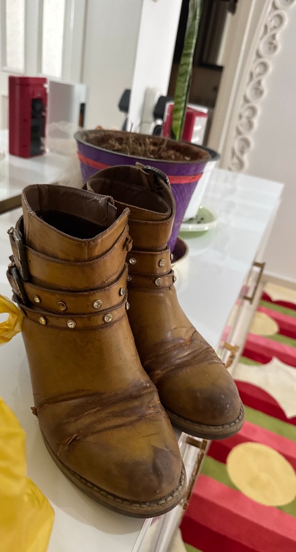 Kahverengi Deri Tokalı Kadın Bot