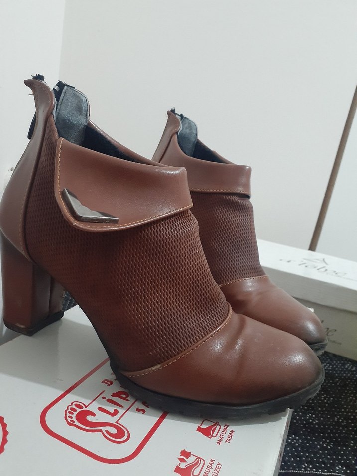 Kahverengi Deri Tokalı Kadın Bot