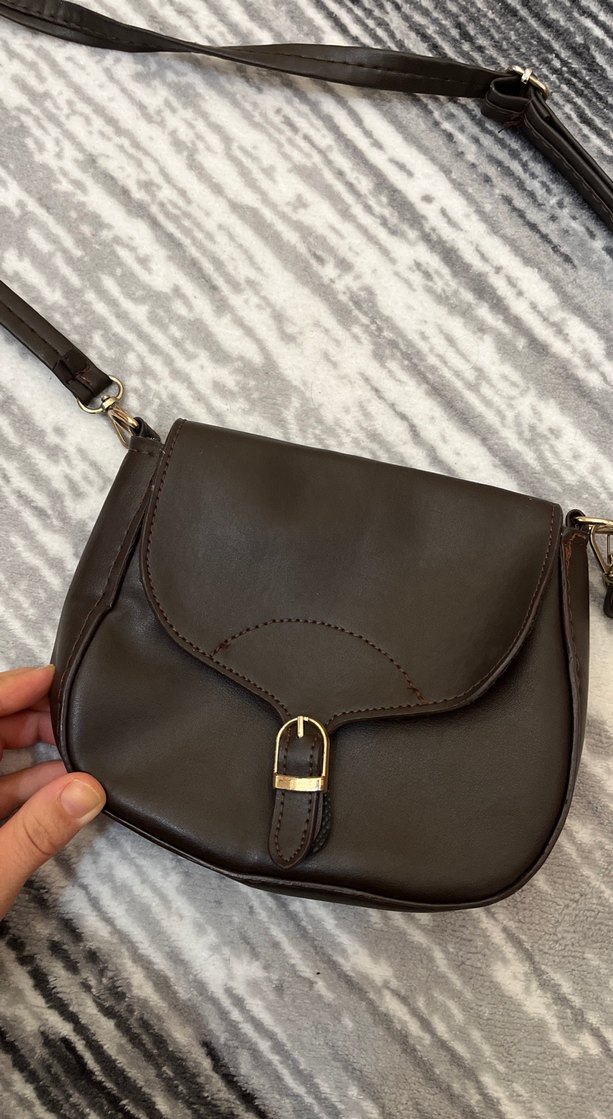 Kahverengi deri ve tokalı kapaklı, sade ve şık bohem tasarıma sahip kadın çantası. Günlük kullanım için uygundur.