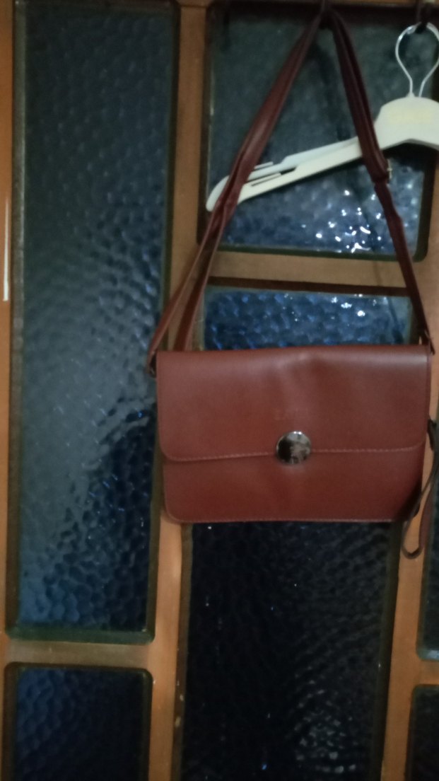 Kahverengi deri, tokalı kapaklı kadın çantası. Parlak yüzeye sahip, minimalist ve bohem tarzda, günlük şık kullanıma uygun.