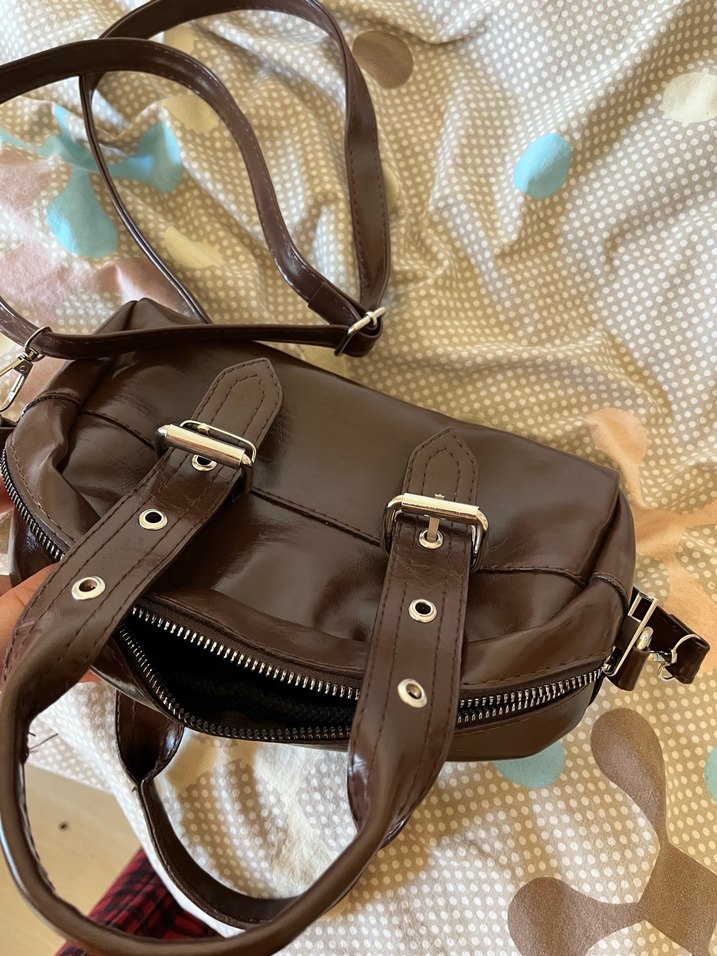 Kahverengi deri tokalı ve fermuarlı kadın çantası, bohem ve retro tarzıyla günlük kullanıma uygundur.