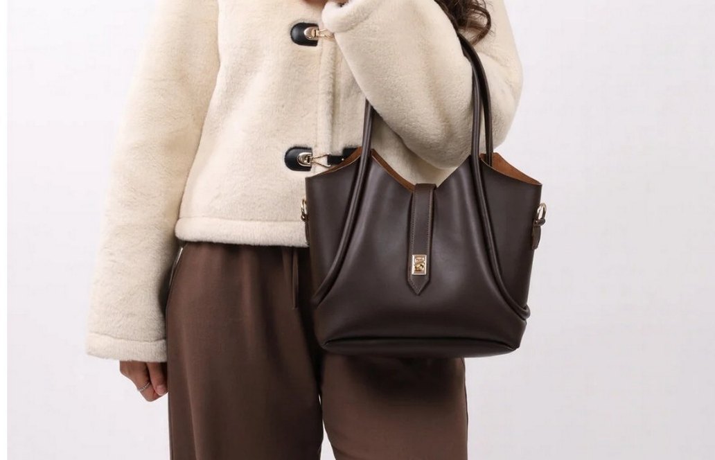 Bu koyu kahverengi deri kadın çanta, tokalı detayı ve modern klasik tasarımıyla günlük kullanıma uygun, rahat ve şık bir modeldir.