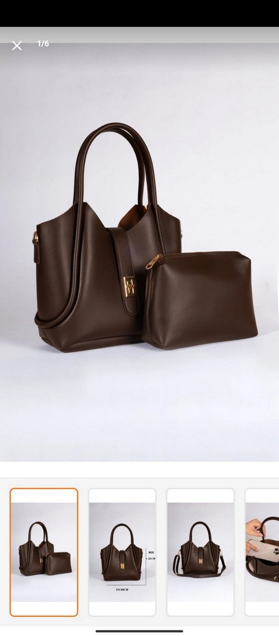 Kahverengi deri tokalı kadın çanta, minimal ve çağdaş tasarıma sahip olup, günlük kullanıma uygundur. Yanında uyumlu bir cüzdan bulunur.