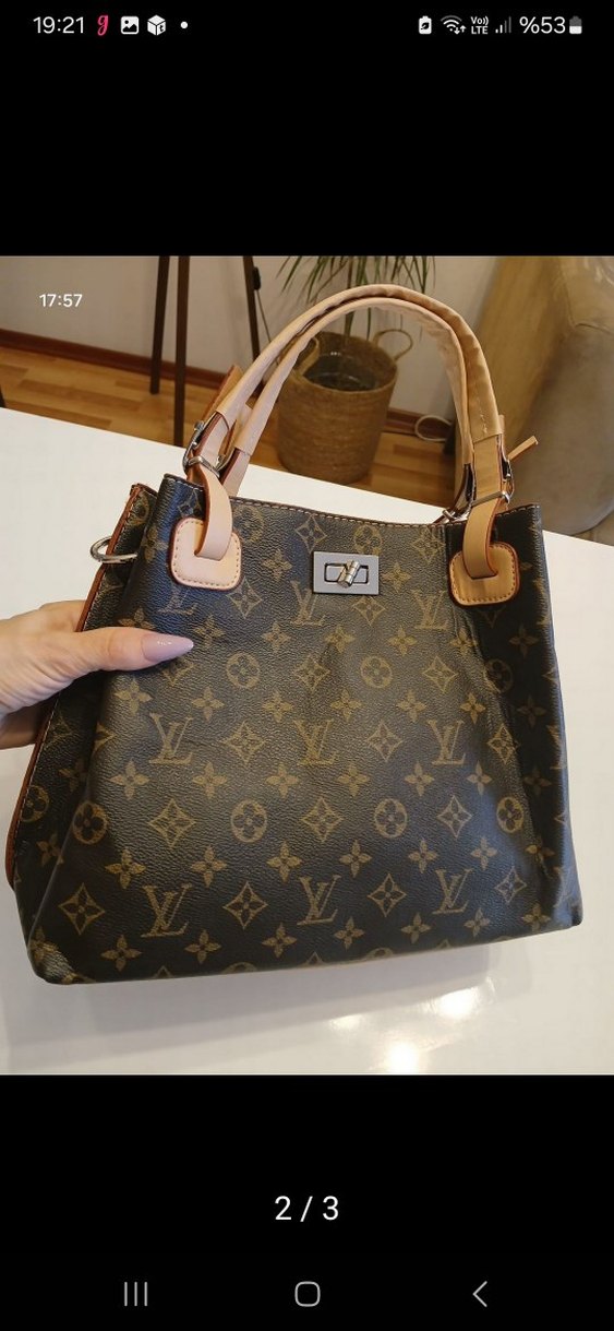 Kahverengi deri, parlak baskılı desene ve tokalı saplara sahip kadın çantası. Modern klasik tarzıyla Paris şıklığını yansıtıyor. Günlük kullanıma uygun.