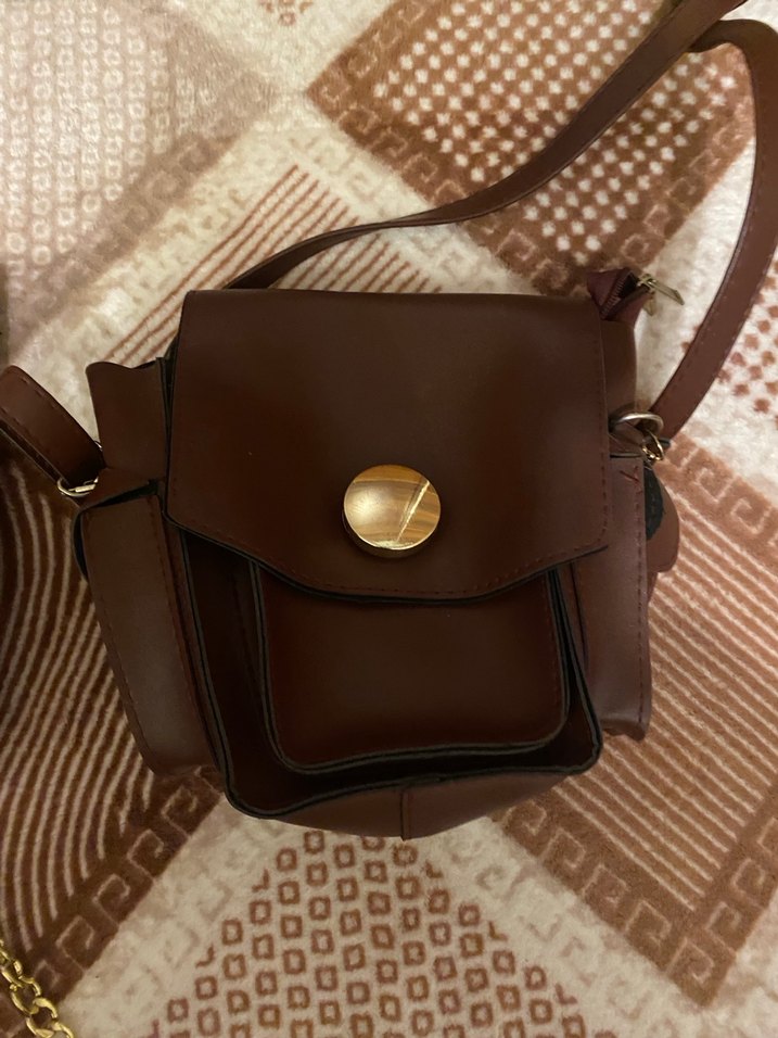 Kahverengi Deri Tokalı Kadın Çanta