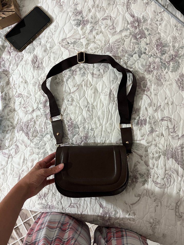 Kahverengi Deri Tokalı Kadın Çanta