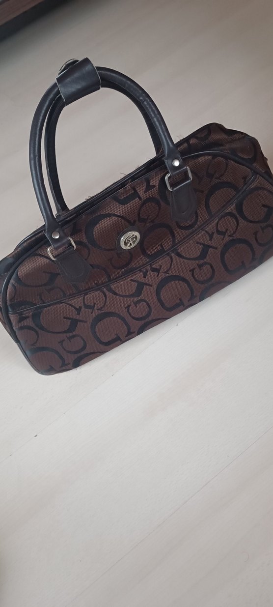 Kahverengi deri, tokalı ve baskılı desene sahip kadın çantası, klasik şıklığı sokak stiliyle birleştirir. Günlük kullanıma uygundur. herhangi bir sorunu yok temiz bir iki kez kullanıldı