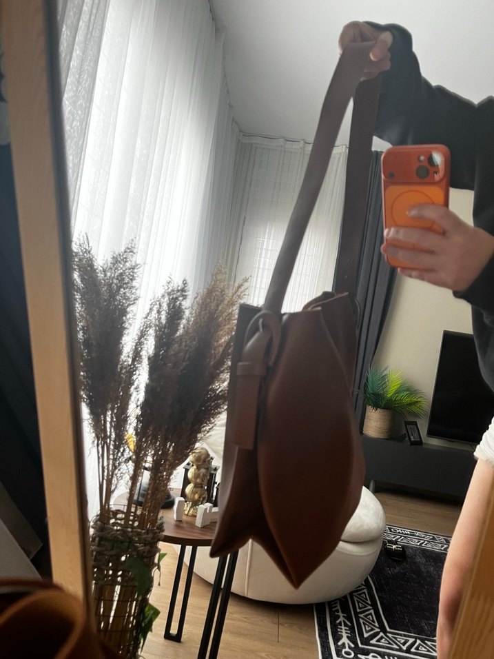 Kahverengi Deri Tokalı Kadın Çanta