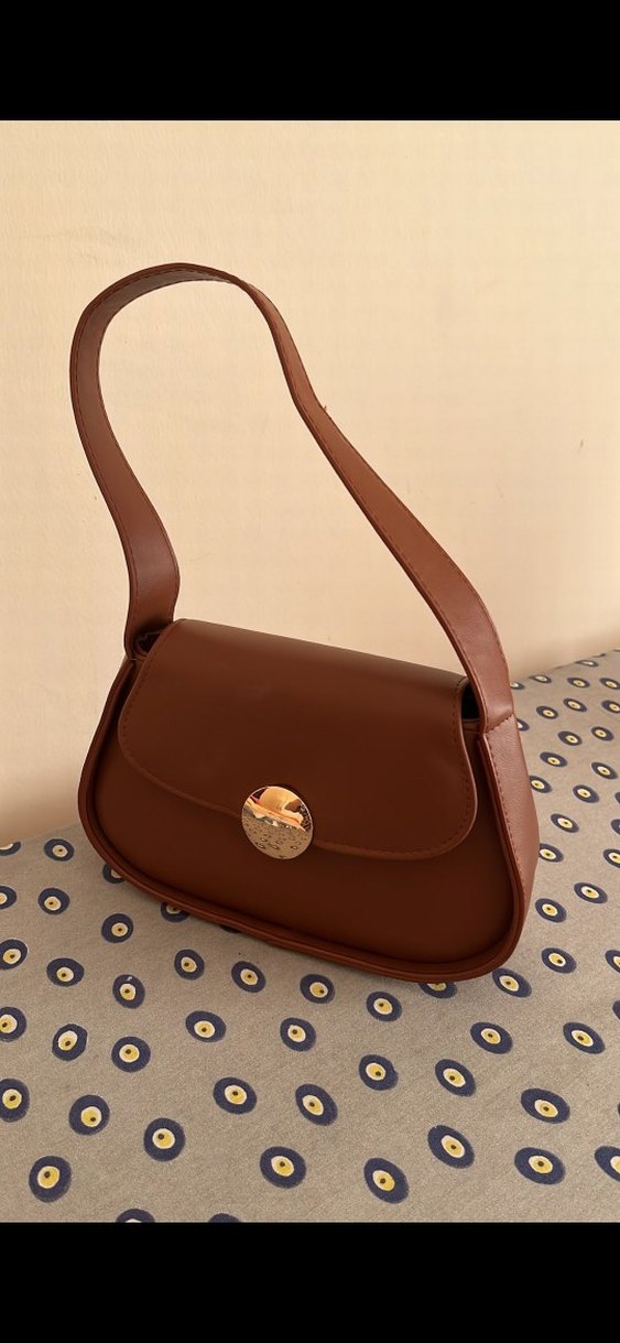 Kahverengi Deri Tokalı Kadın Çanta - Görsel 1