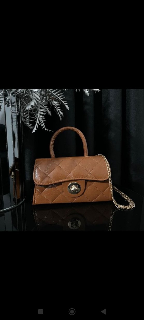 Parlak kahverengi deri kadın çanta, tokalı kapanış ve kapitone detaylarla klasik zarafeti Paris sokak stiliyle buluşturuyor.