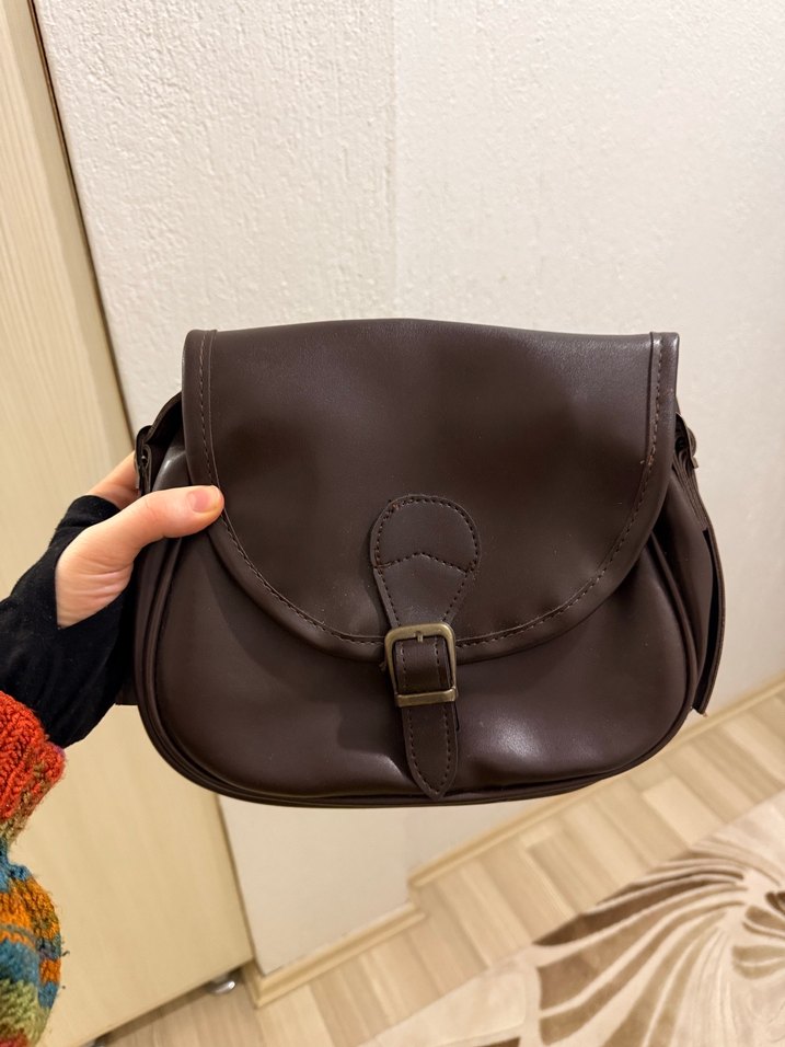 Kahverengi Deri Tokalı Kadın Çanta