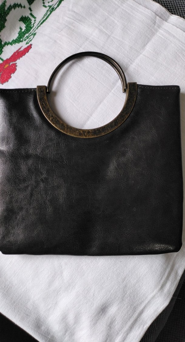 Kahverengi deri tokalı metal saplı, Paris ve bohem etkili koyu gotik tarzda kadın çantası. Günlük kullanım için uygundur.