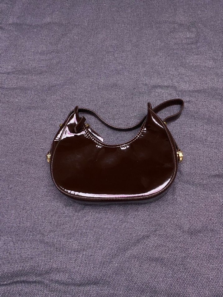 Kahverengi deri tokalı kadın çantası, klasik ve zarif gotik stil sunar. Düz yüzeyi günlük kullanıma uygundur.