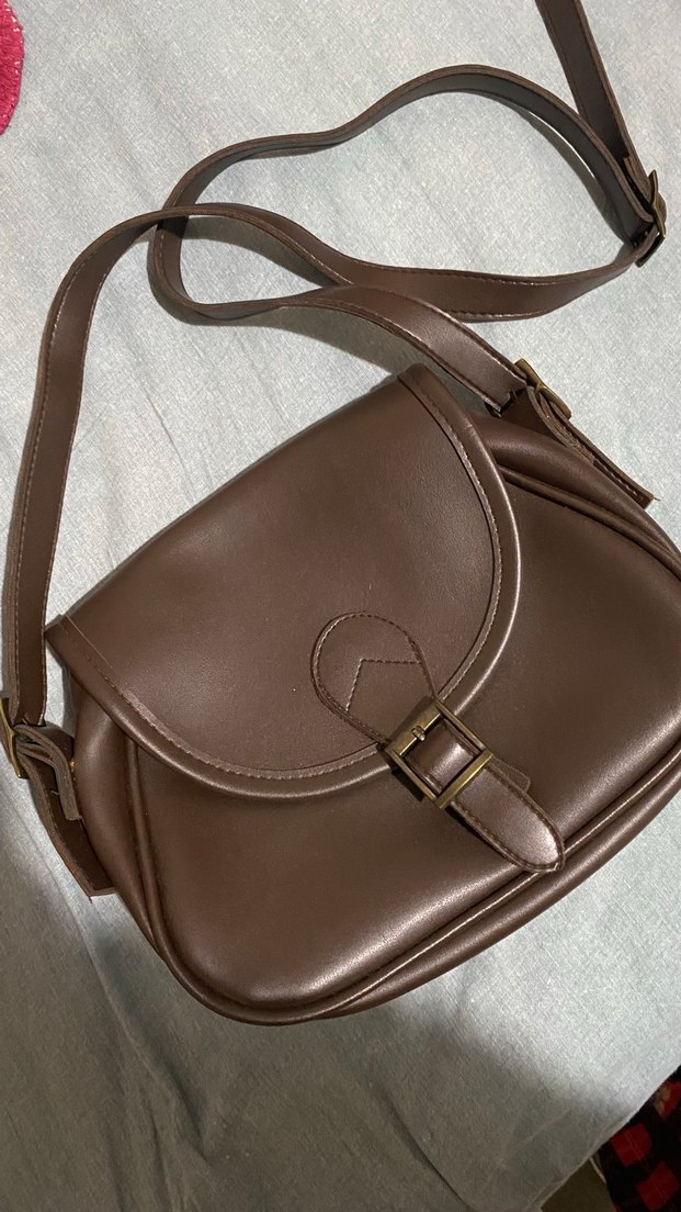 Kahverengi deri, parlak yüzeyli ve tokalı kadın çantası. Düz ve klasik tarzda, günlük kullanıma uygun, Paris esintili. Ürün 1-2 kez kullanıldı hiç bir sorunu yoktur.