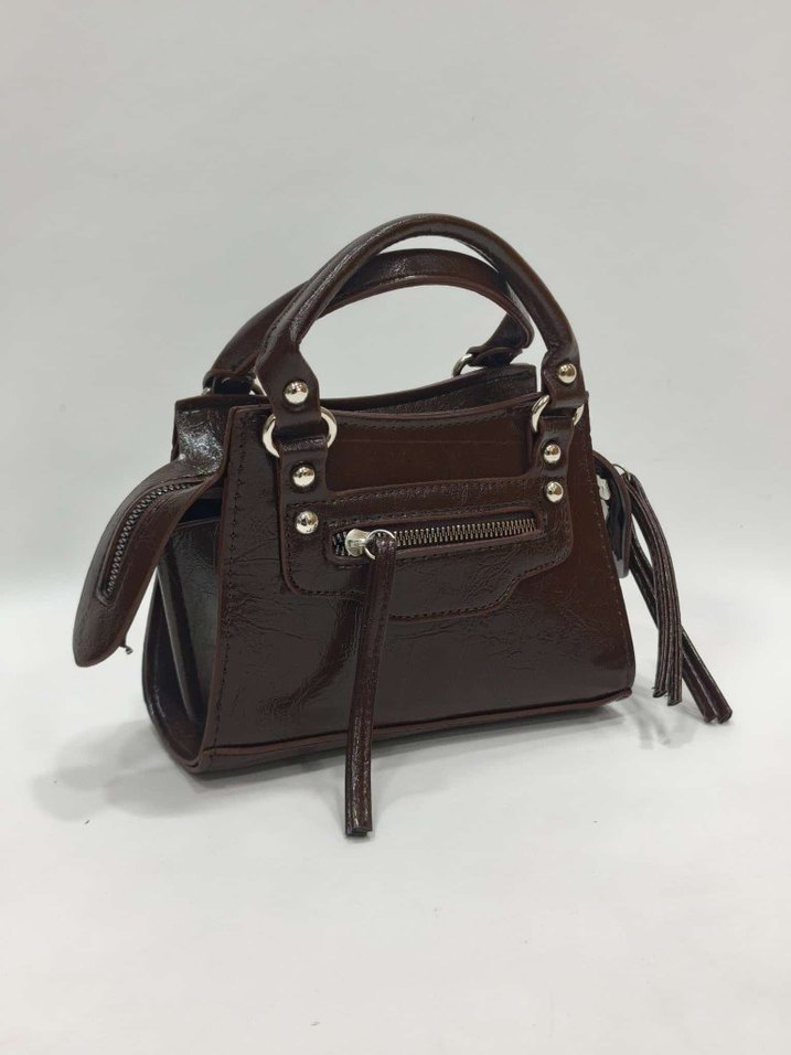 Kahverengi deri tokalı kadın çantası, biker stili ve Paris esintili klasik şıklık sunar. Fermuar detayları ve kompakt yapısıyla günlük kullanıma uygundur.