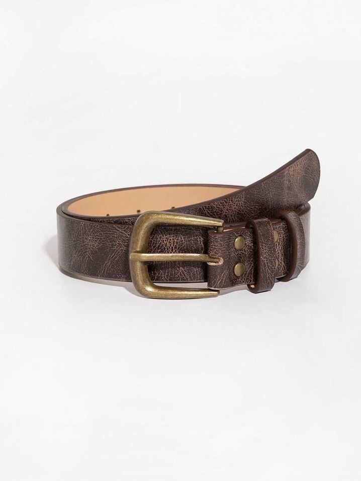 Koyu kahverengi deri, vintage görünümlü tokalı kadın kemeri, klasik karşı kültür tarzını yansıtıyor.