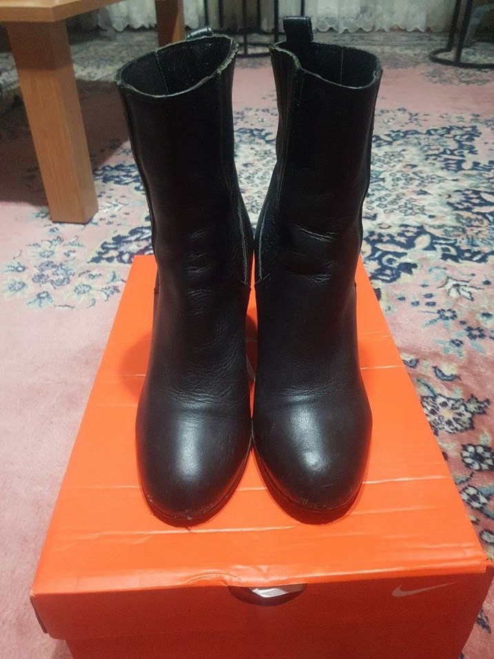 Kahverengi deri, tokalı, blok topuklu botlar, minimalist goth tarzıyla günlük kullanım için cesur bir seçimdir.