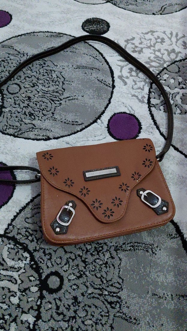 Kahverengi deri, tokalı ve baskılı çiçek desenli, günlük kullanım için bohem vintage tarzda kadın çantası.