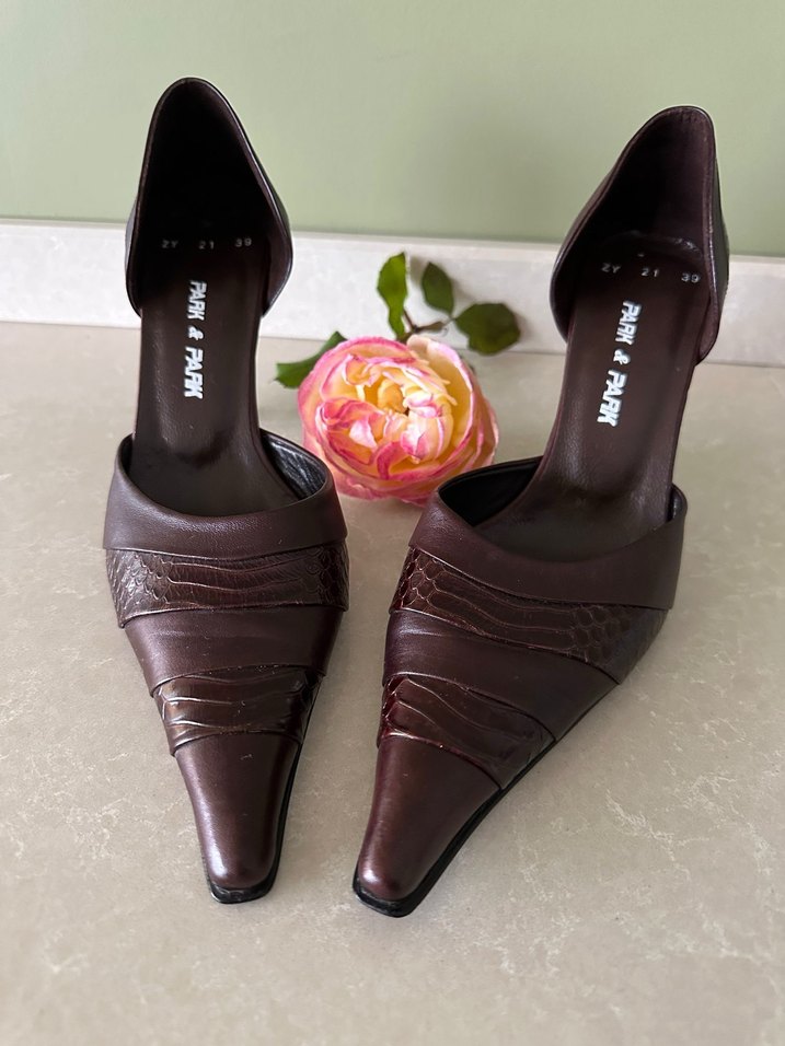 Kahverengi Deri Topuklu Stiletto Kadın Ayakkabı