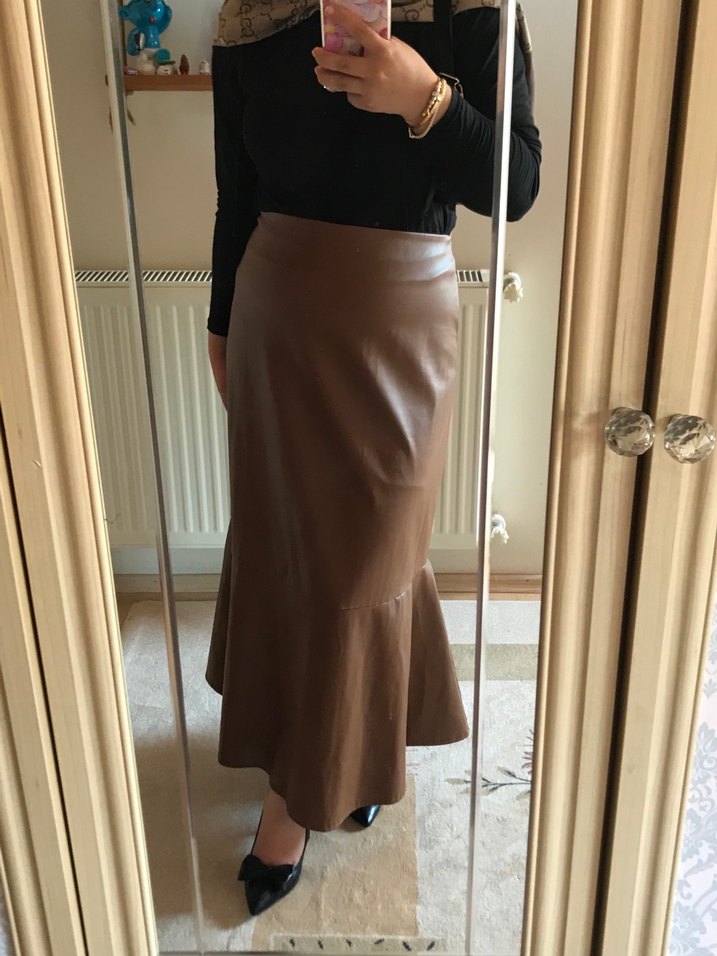Kahverengi Deri Uzun Etek