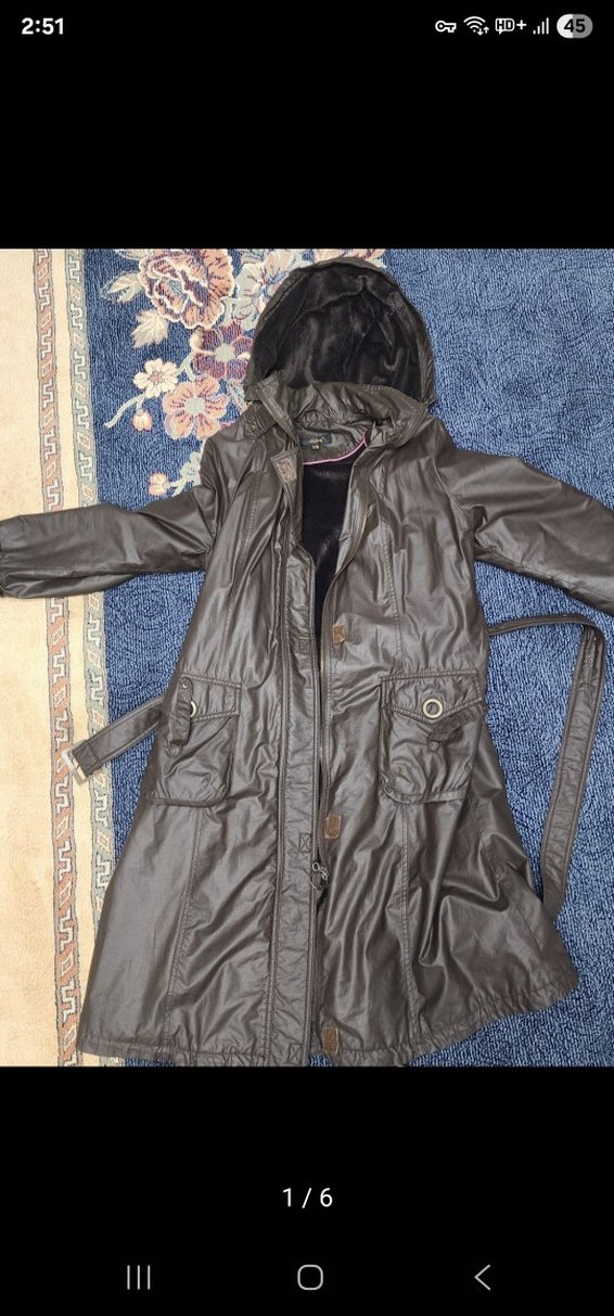Kahverengi Deri Uzun Kemerli Kadın Ceket