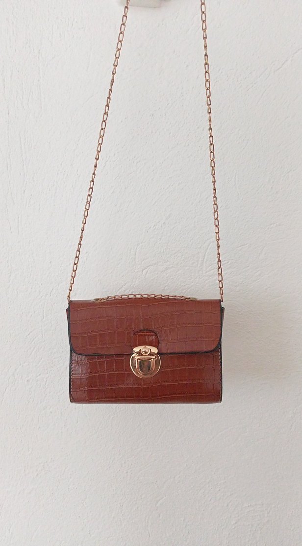 Kahverengi Deri Yılan Desenli Kadın Çanta