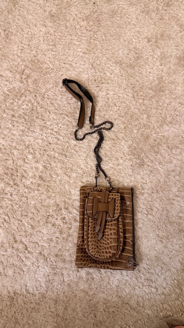 Kahverengi deri, yılan deseni ve tokalı detaylı kadın çantası. Zincir askılı, günlük kullanım için uygun sokak stili.