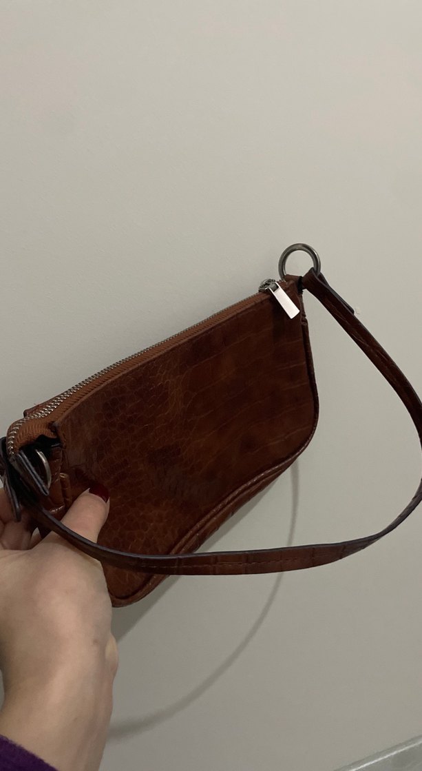 Kahverengi Deri Yılan Desenli Kadın Çanta