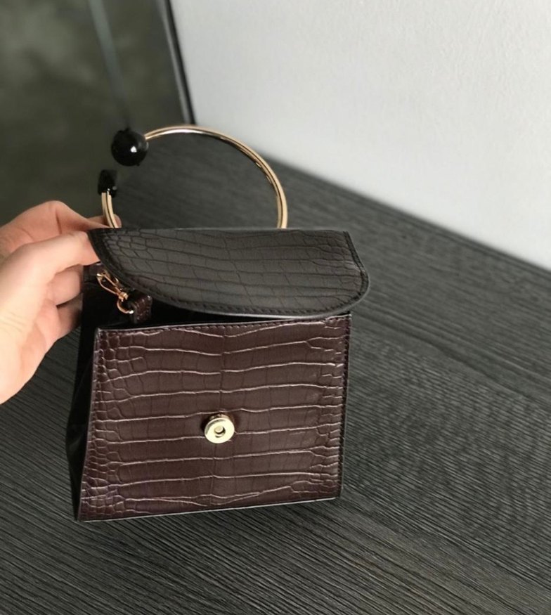Koyu kahverengi deri yılan desenli çanta, tokalı kapaması ve modern klasik tarzıyla Paris şıklığını yansıtıyor.