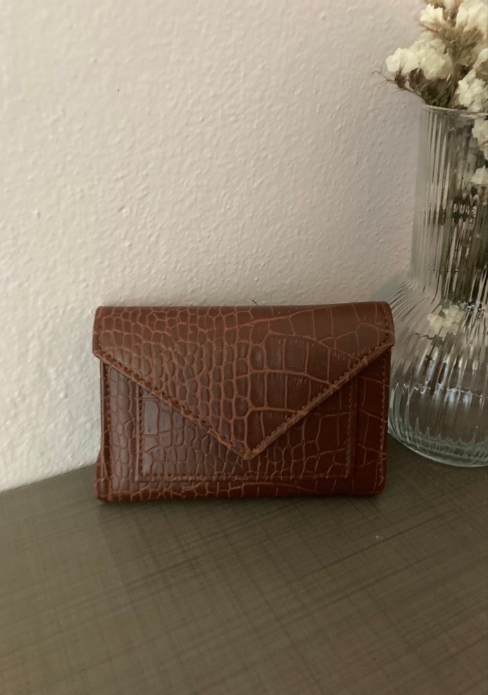 Kahverengi deri, yılan deseni ve kemerli tasarıma sahip vintage tarzda kadın cüzdanı. Paris esintili şık detaylar içerir. Hiç kullanılmadı fakat bir kısmında küçük bir kusuru var ama çok küçük bu kullanımı etkilemez.