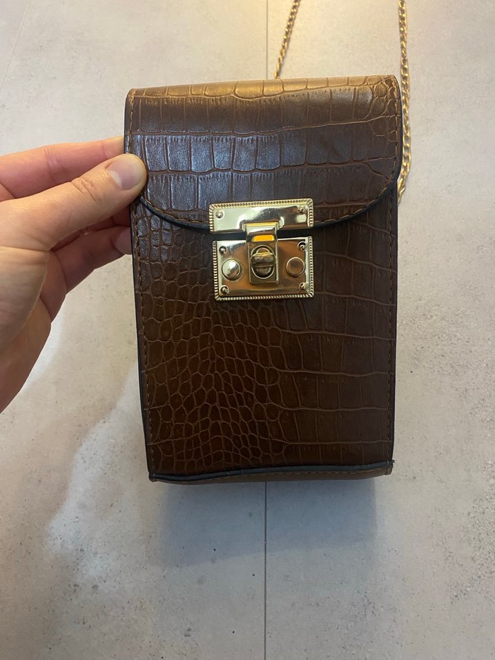 Kahverengi Deri Yılan Desenli Vintage Kadın Çanta