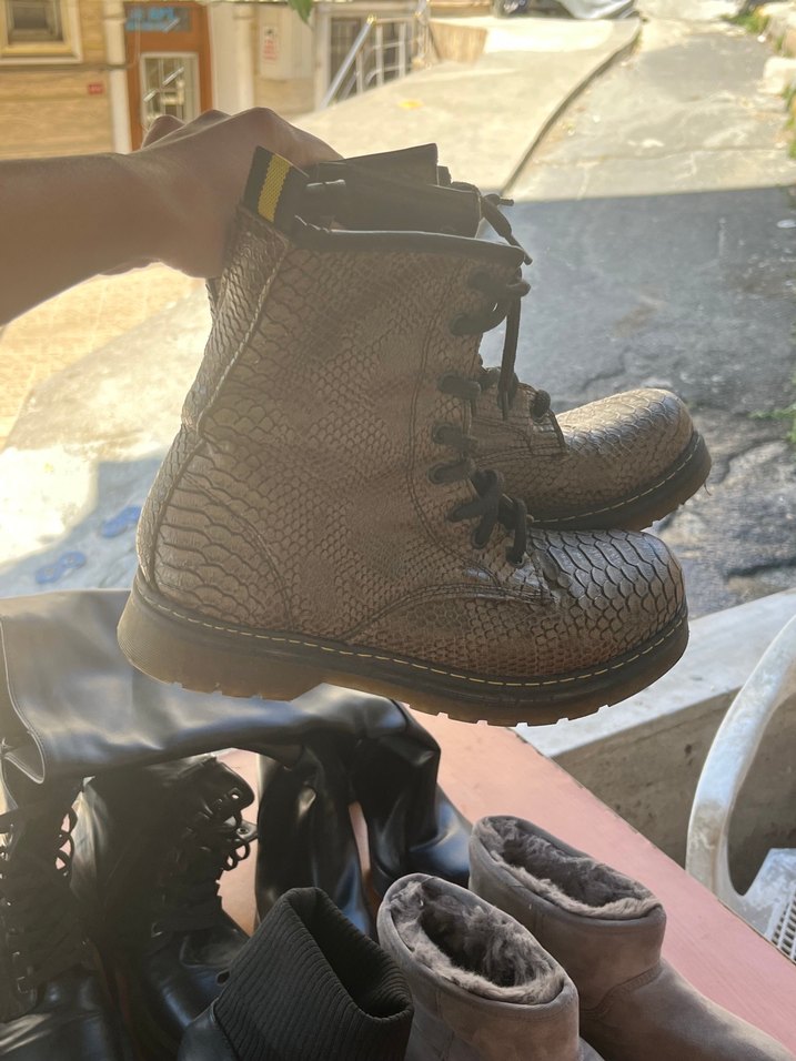 Kahverengi deri, yüksek topuklu ve tokalı botlar. Sokak stiline uygun, günlük kullanıma elverişli goth tarzı şık botlar.