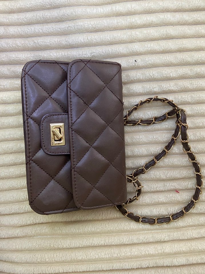 Kahverengi Deri Zincir Askılı Kadın Çanta
