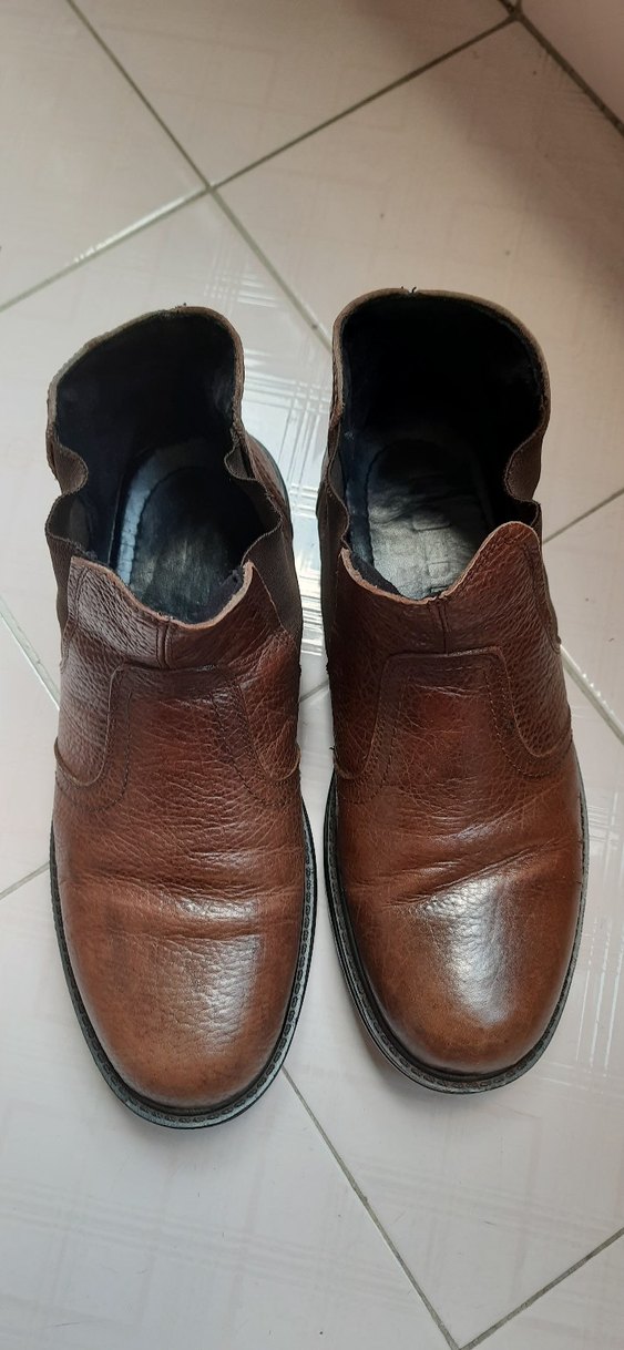Parlak kahverengi deri tasarıma sahip erkek botları, klasik ve geleneksel stilde günlük kullanıma uygundur. Altı lastiktir ve cok iyi durumdadır