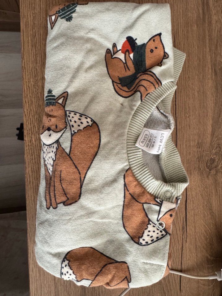 Gri ve kahverengi renklerde, tilki desenli bebek ikili takımyumuşak ve sıcak kumaştan üretilmiştir. 0-3 ay leke defo yok 1 kez giyebildik