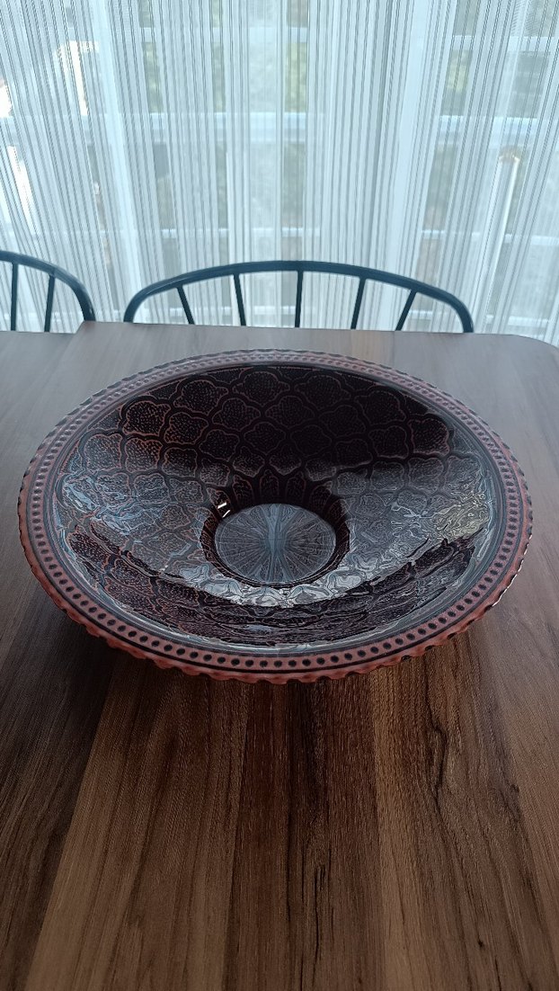 Kahverengi, desenli cam dekoratif tabak