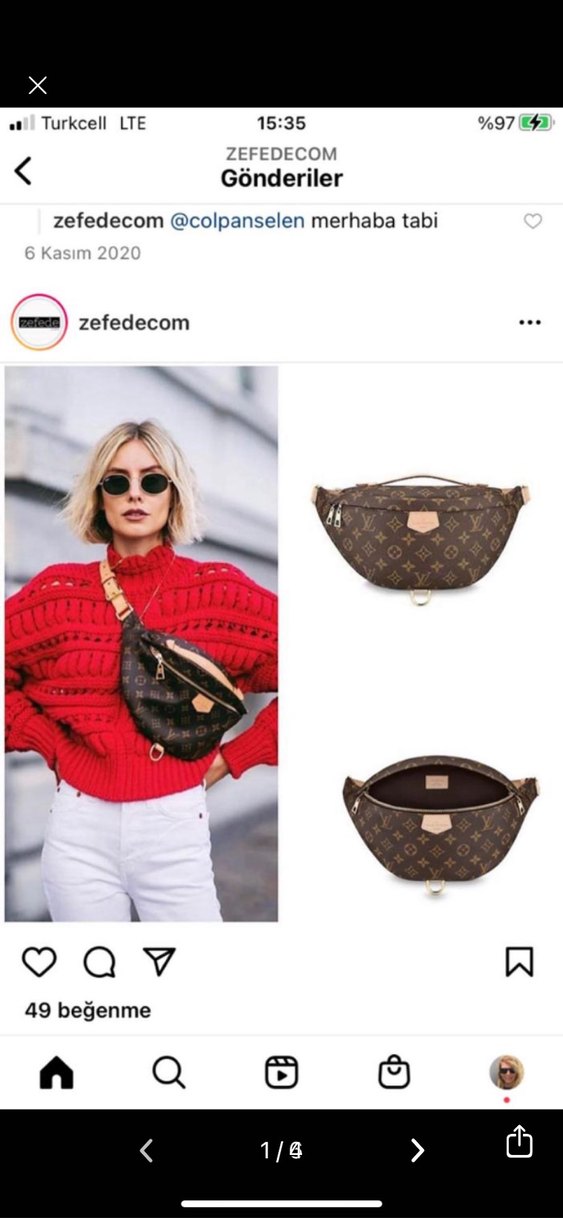 Desenli kahverengi deri bel çantası, günlük sokak stiline uygun kemerli askıyla tamamlanmıştır.