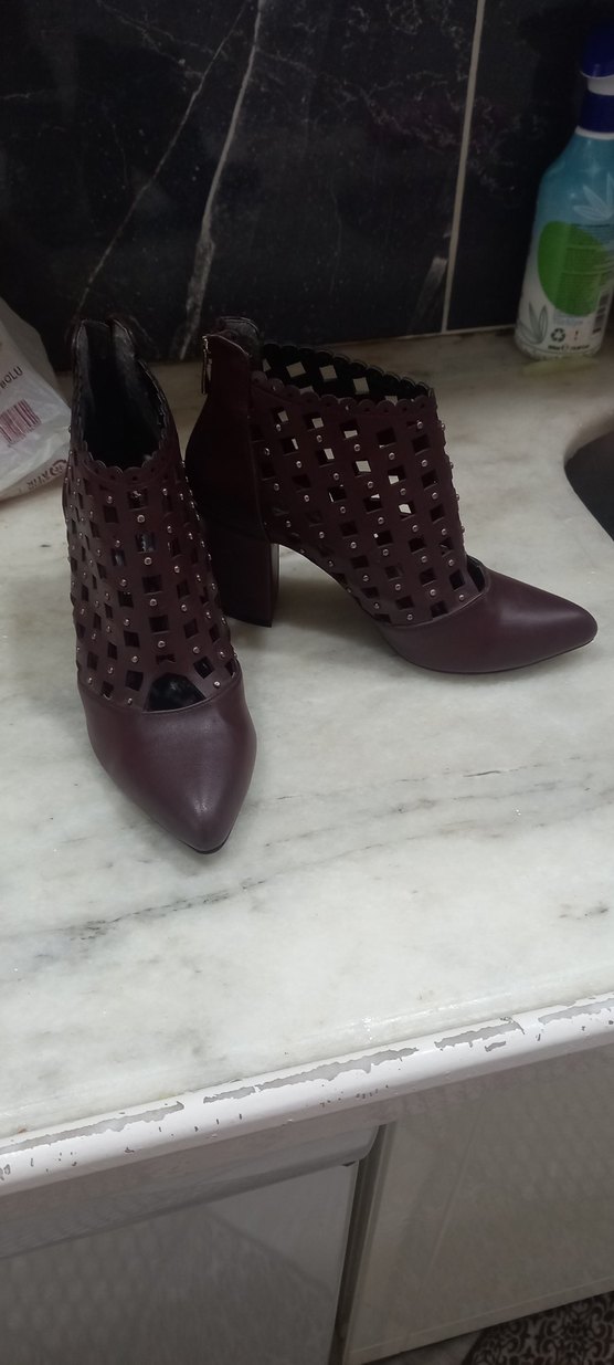 Kahverengi deri kadın botlar, blok topuklu ve desenli, tokalı tasarımıyla cesur ve çağdaş bir görünüm sunar. Günlük kullanıma uygundur.