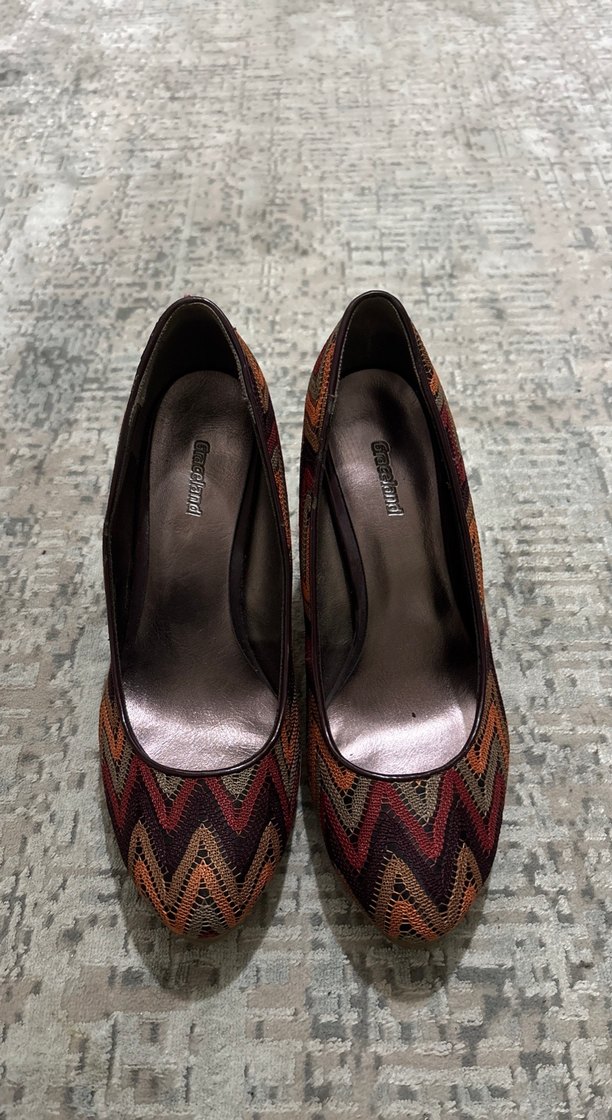 Kahverengi Desenli Dolgu Topuklu Kadın Stiletto