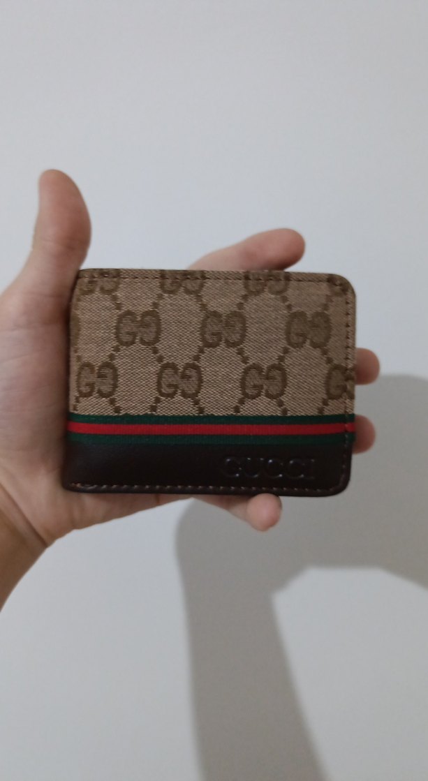 Kahverengi, desenli ve şerit detaylı erkek cüzdanı. Sokak stili ve iş tarzını bir araya getirir.