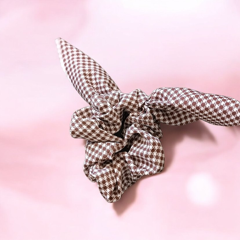 Kahverengi sentetik kumaştan, fiyonk detaylı ve desenli Paris esintili saç tokası. Retro tarz için uygun.