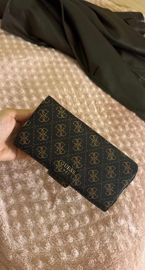 Kahverengi desenli, parlak yüzeyli sentetik kumaş ve kürk detaylı clutch cüzdan, bohem stil ile klasik zarafeti günlük kullanımda birleştirir.