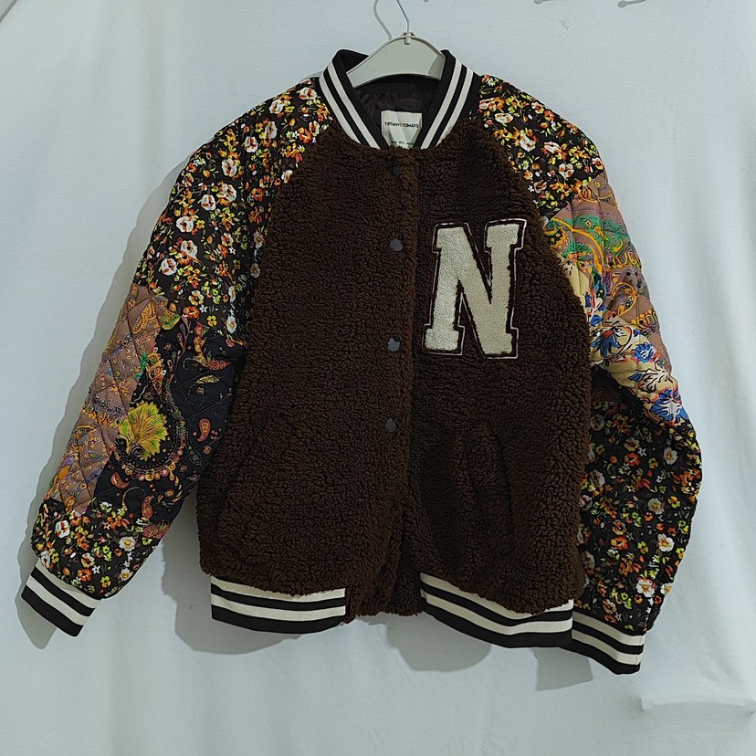 Kahverengi, uzun kollu, yuvarlak yakalı, bol kesim bu kadın ceketi desenli bohem tarzı ve peluş detaylarla retro bir görünüm sunar. Midi boyda, rahat bir modeldir.