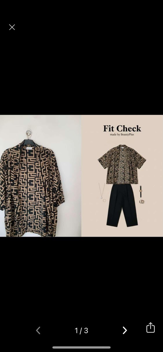 Kahverengi, kısa kollu, bol kesim erkek pijama. Desenli ve crew neck yakalı, sokak stiliyle uyumlu rahat bir model. "Fit Check" yazısı bulunur.