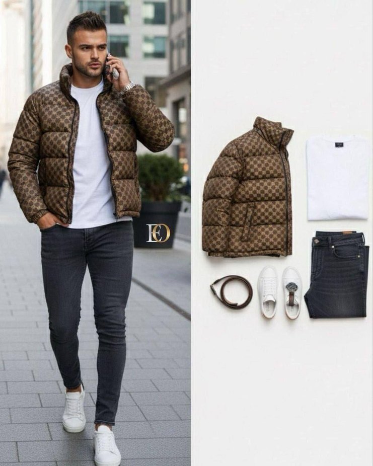 Kahverengi Desenli Puff Mont