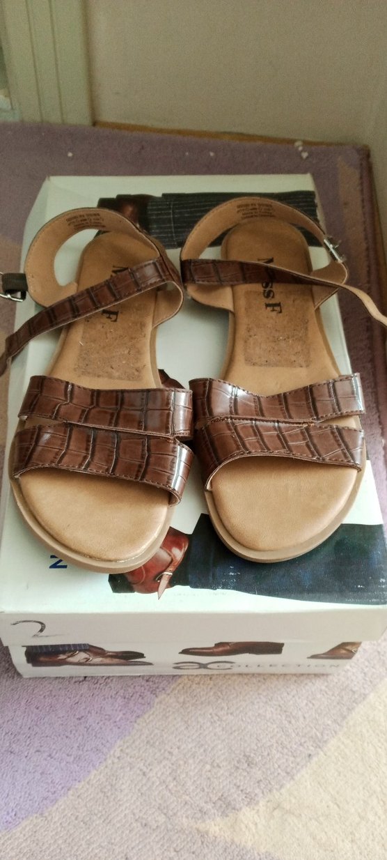Kahverengi renkte, desenli detaylara sahip sandalet,etiket izi vardır bilerek alınız lütfen. Kauçuk tabanlı, bohem tarzda şık bir seçim.Sıfır ürün.38 uyumludur.