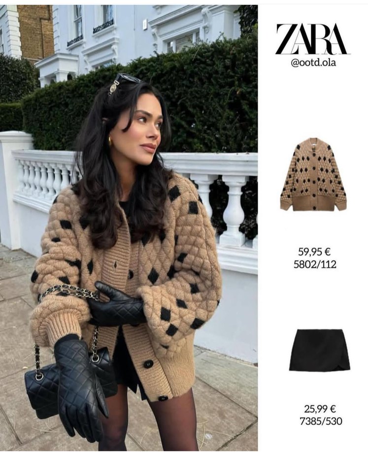 Kahverengi desenli, kısa ve vücuda oturan triko hırka, uzun kollu ve boğazlıdır, kürk detaylarıyla günlük kullanıma uygundur.