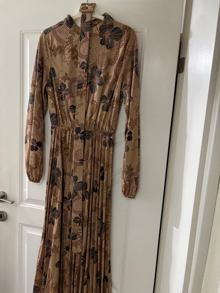 Kahverengi desenli uzun elbise